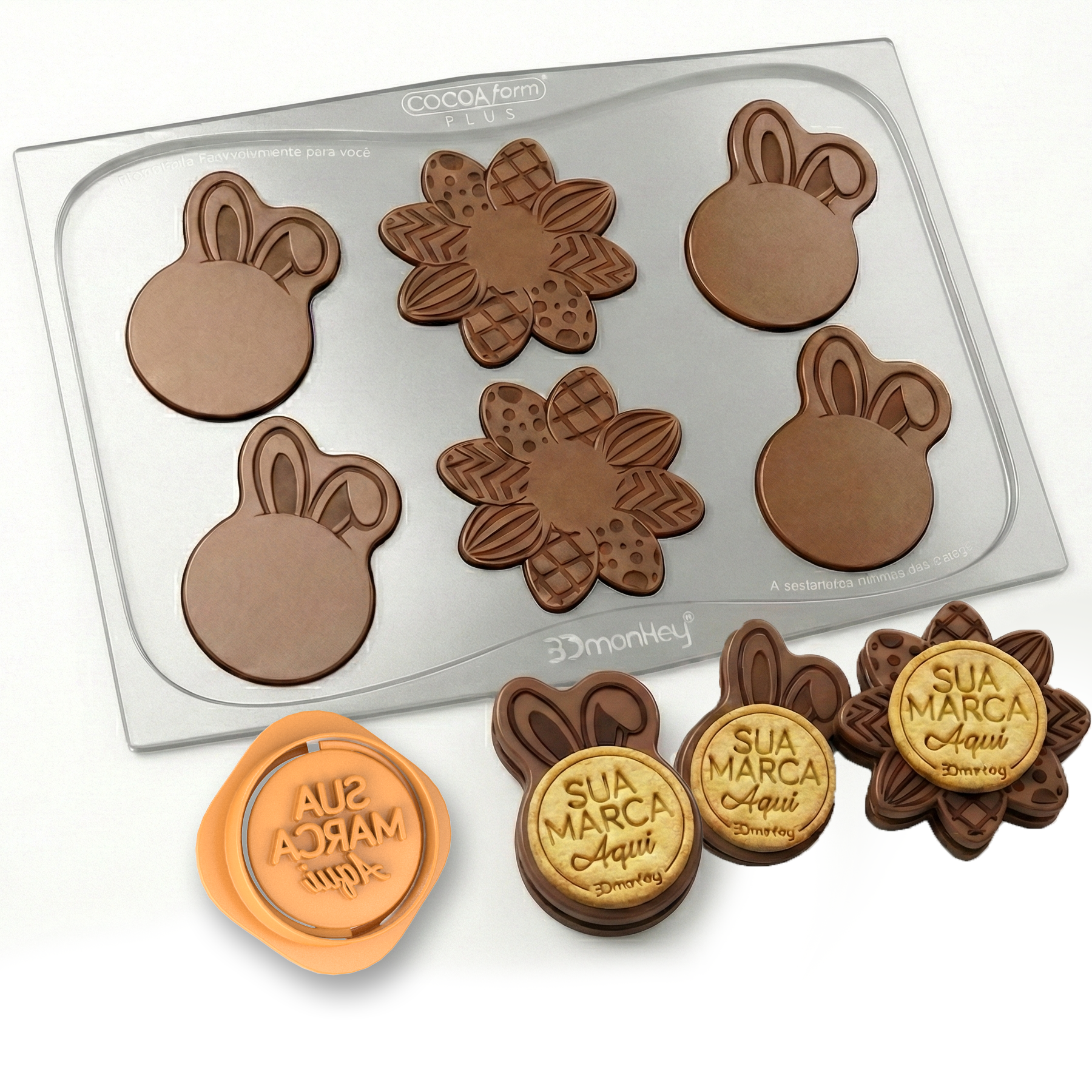 Formas para chocolate personalizadas com a sua marca para destacar ainda mais seus produtos. Conheça e apaixone-se. Praticidade em alto padrão para aplicar sua marca em cada bolo e doce de forma fácil e rápida. A verdadeira assinatura dos grandes confeiteiros.