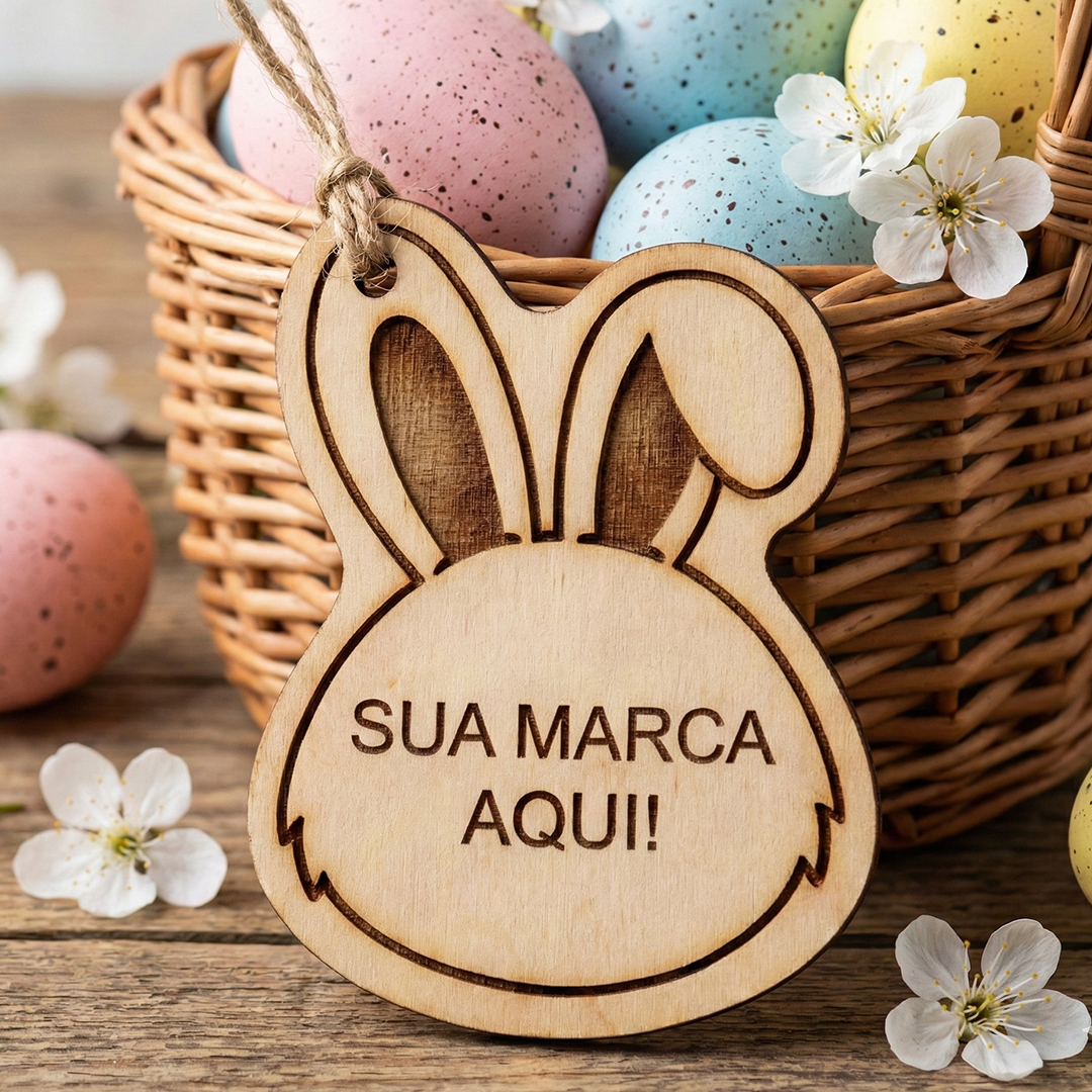 Produzida em MDF de alta qualidade, com corte preciso a laser, ela é personalizada com a marca, nome ou identidade visual da cliente, criando um acabamento elegante, padronizado e com alto valor percebido.